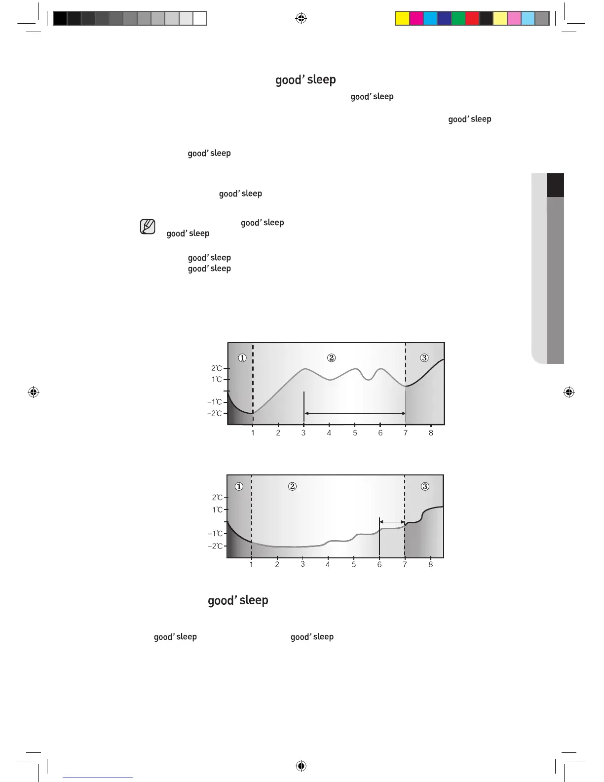 Falling asleep : Eases you into sleep by dropping the temperature.