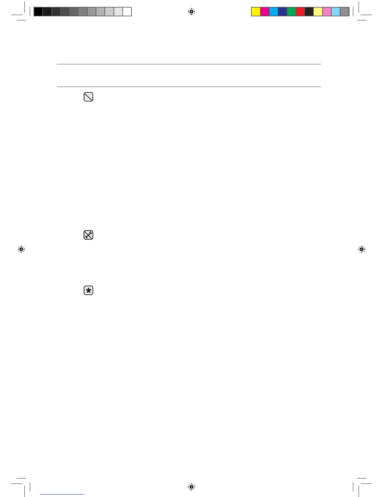 • Potential risk of malfunction, electric shock or fire. If repairs are needed, consult the