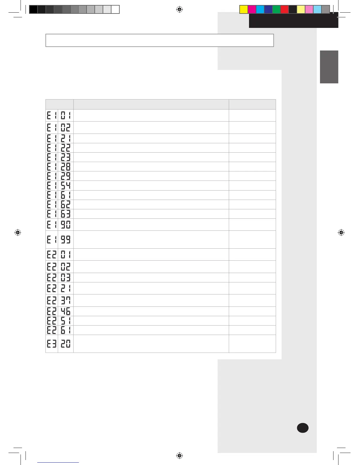The table below give indication about self diagnostic routine. Some of error code requires activities