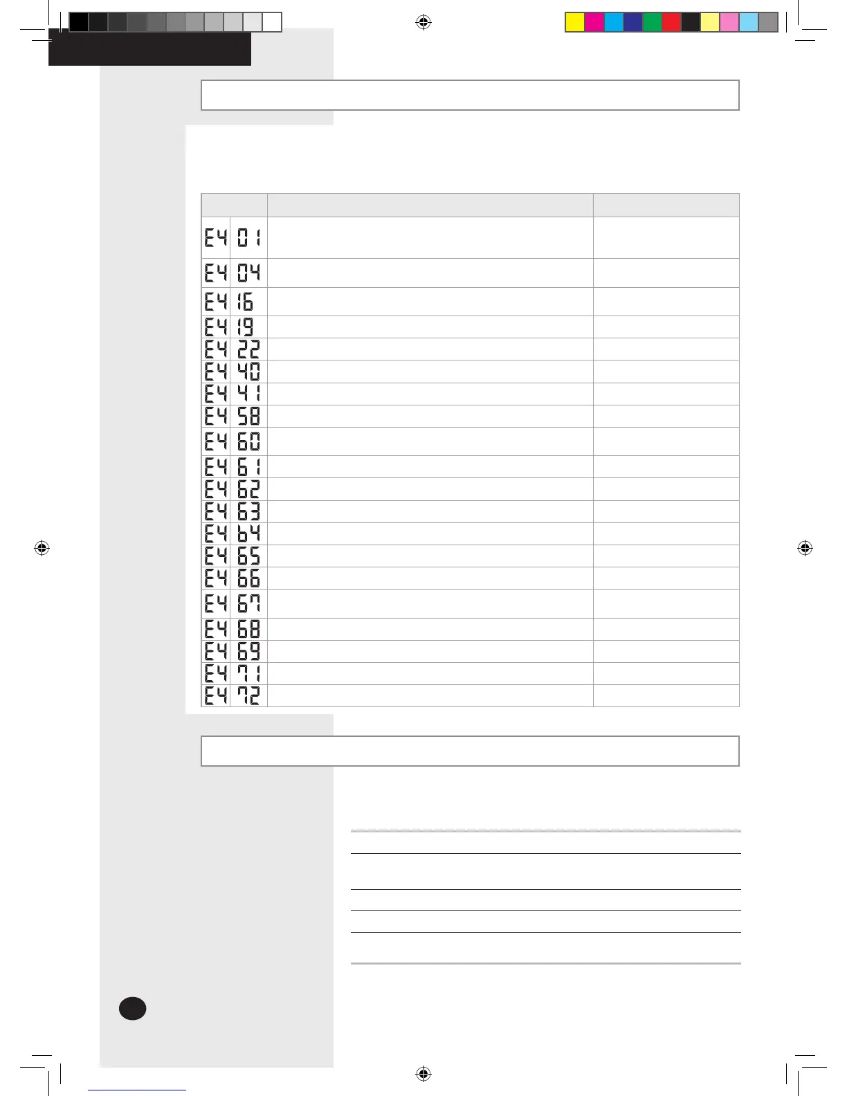 The table below give indication about self diagnostic routine. Some of error code requires activities