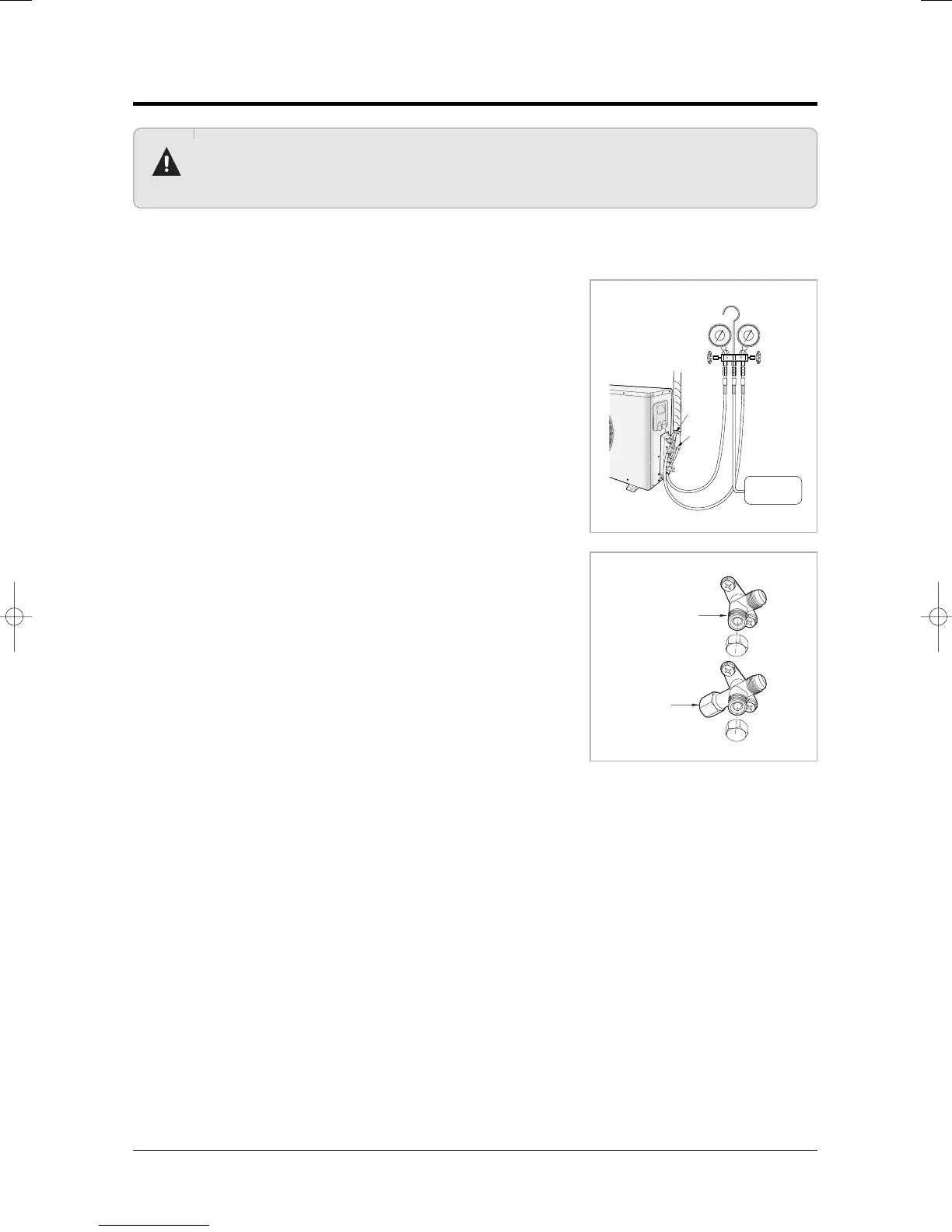 charged in the outdoor unit. Use Vacuum Pump as shown at the right figure. Each unit must be purged in turn.