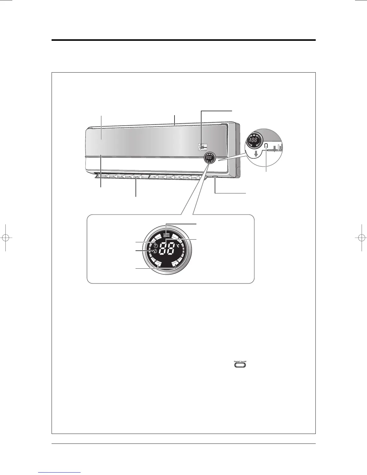 • The room temperature sensor senses air temperature around the sensor, and shows the