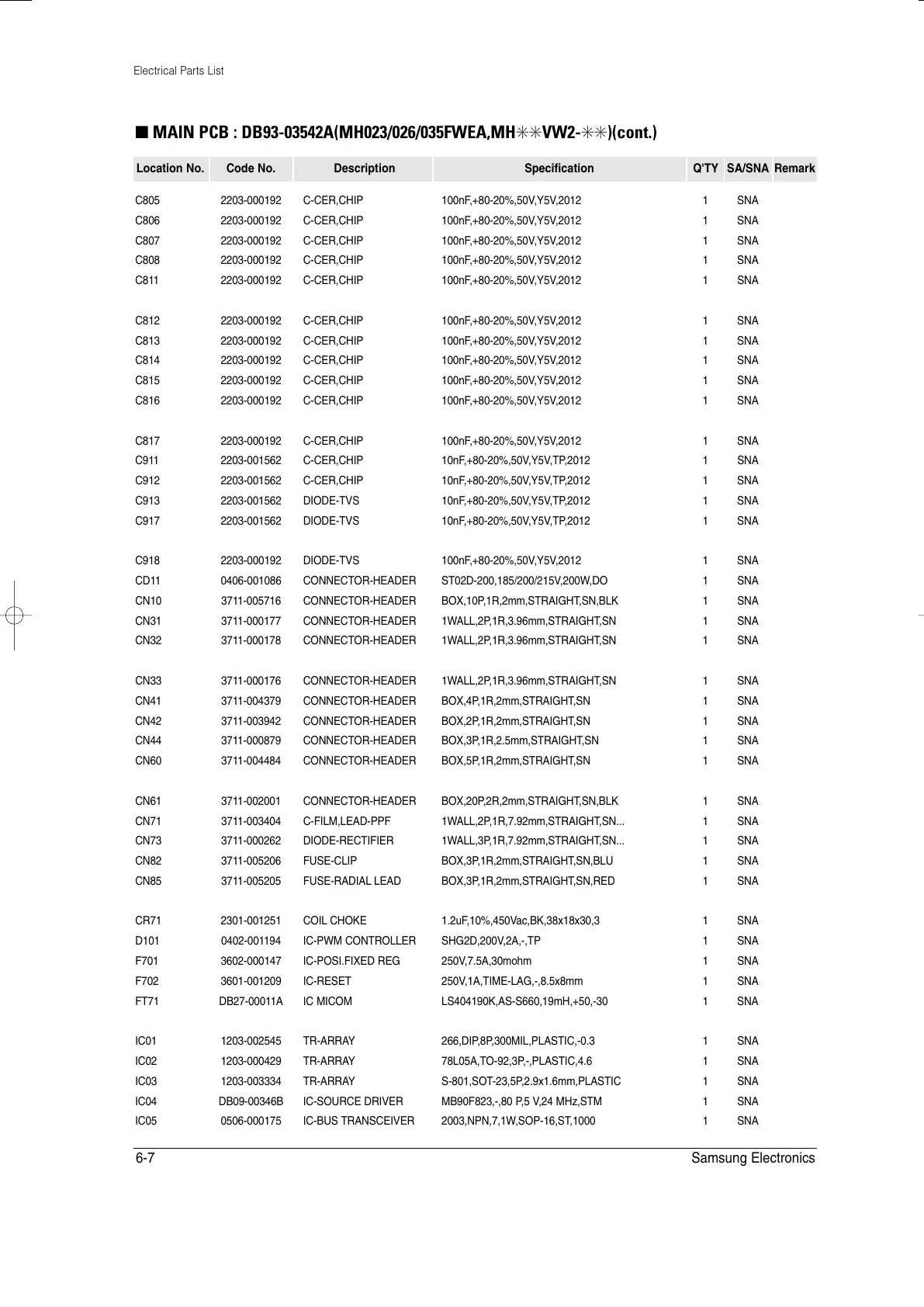 ■ MAIN PCB : DB93-03542A(MH023/026/035FWEA,MH✳✳VW2-✳✳)(cont.)