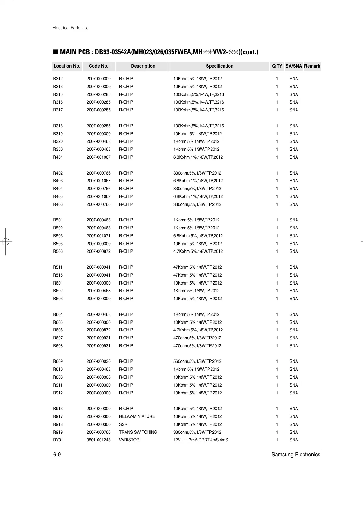 ■ MAIN PCB : DB93-03542A(MH023/026/035FWEA,MH✳✳VW2-✳✳)(cont.)