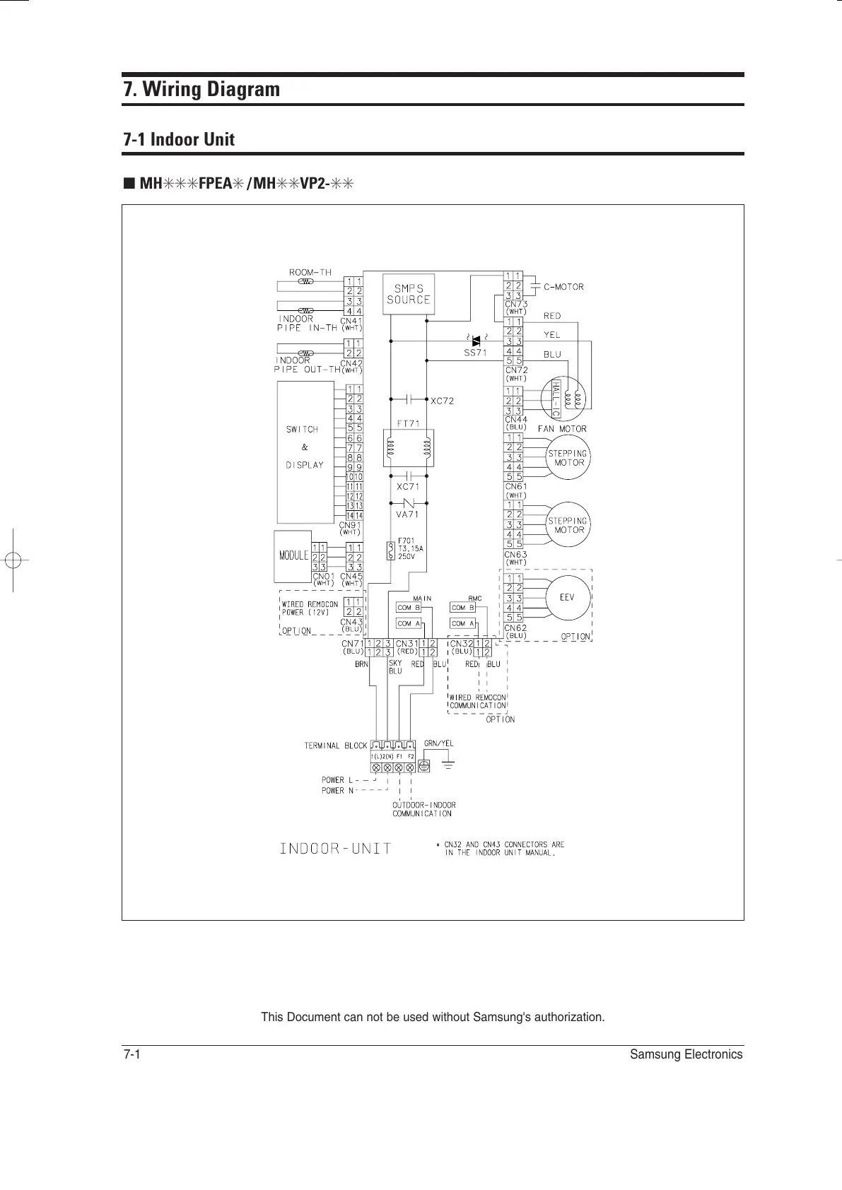 Samsung MH068FXEA4 - Wiring Diagram; Indoor Unit Wiring Diagram - MH✳✳✳FPEA✳;MH✳✳VP2-✳✳