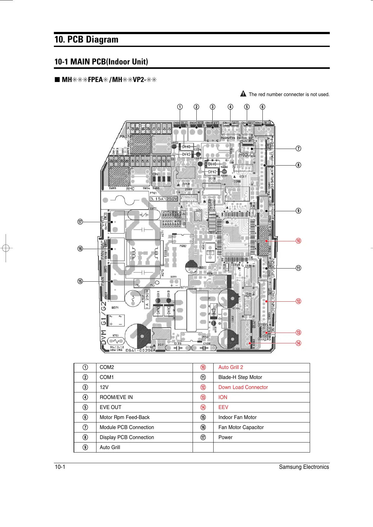 Samsung MH068FXEA4 - PCB Diagram; MAIN PCB - Indoor Unit (MH✳✳✳FPEA✳;MH✳✳VP2-✳✳)