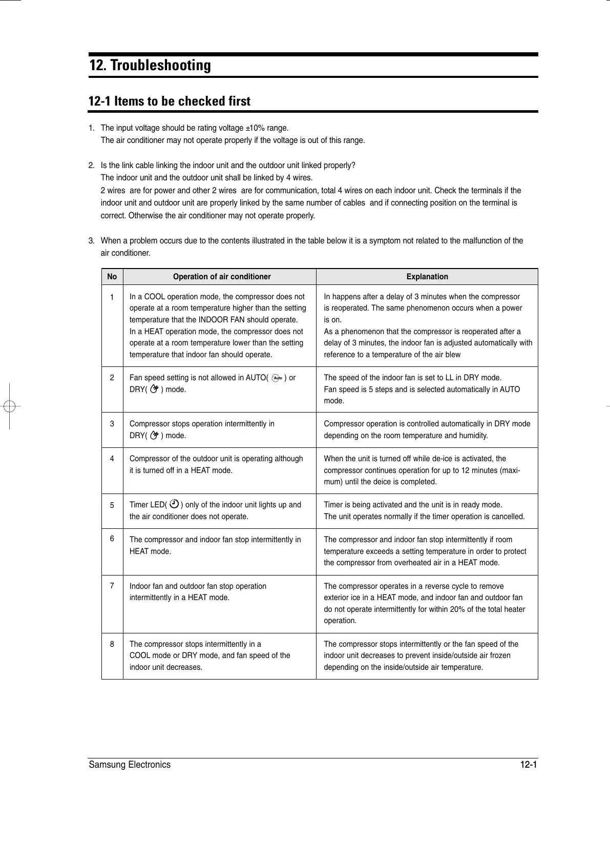 3. When a problem occurs due to the contents illustrated in the table below it is a symptom not related to the malfunction of the
