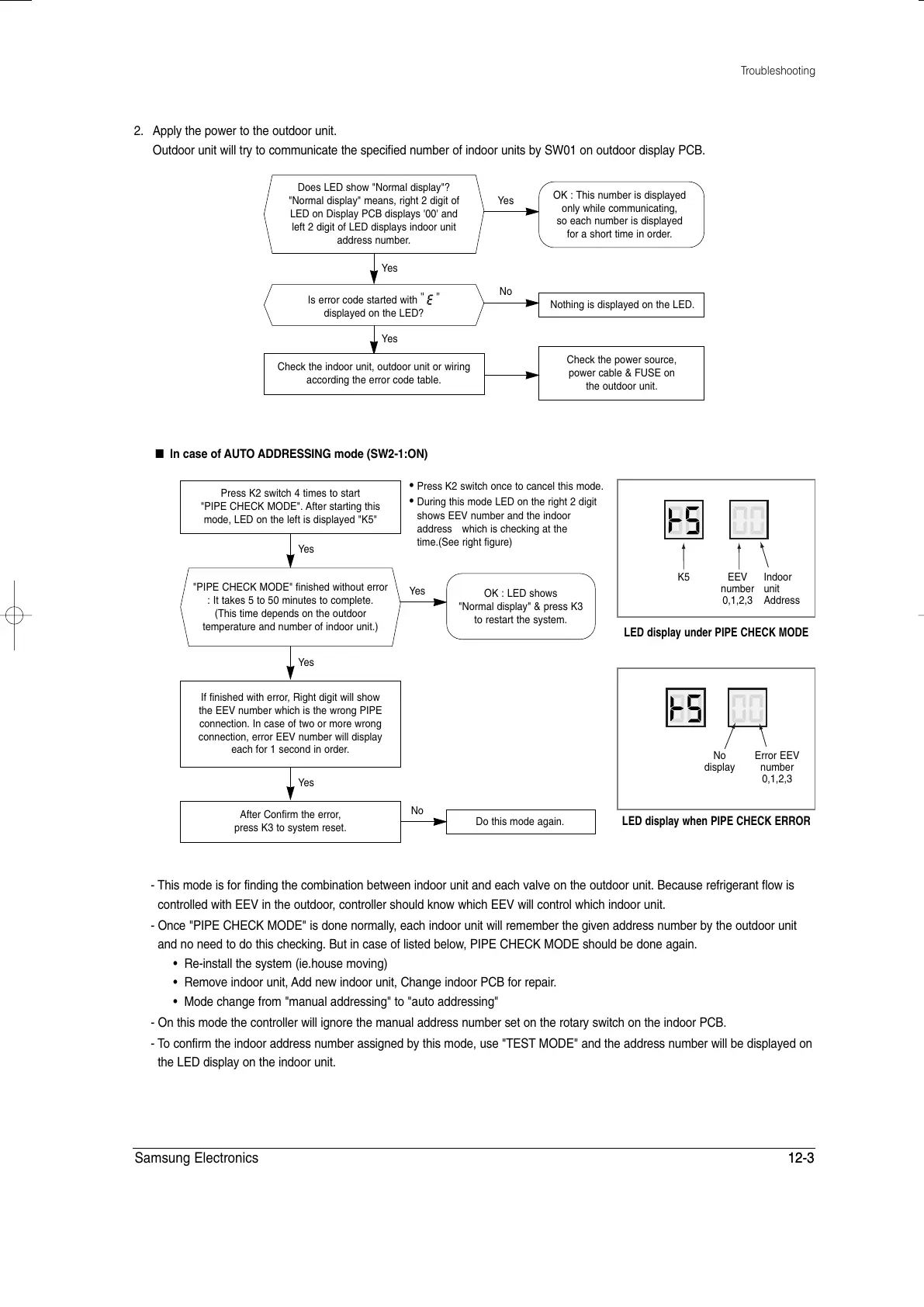 - Once "PIPE CHECK MODE" is done normally, each indoor unit will remember the given address number by the outdoor unit