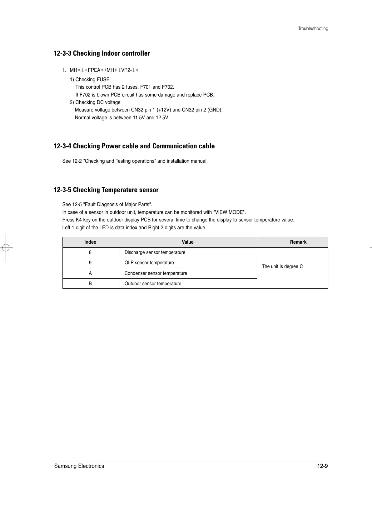 Samsung MH068FXEA4 - Checking Indoor controller; Checking Temperature sensor