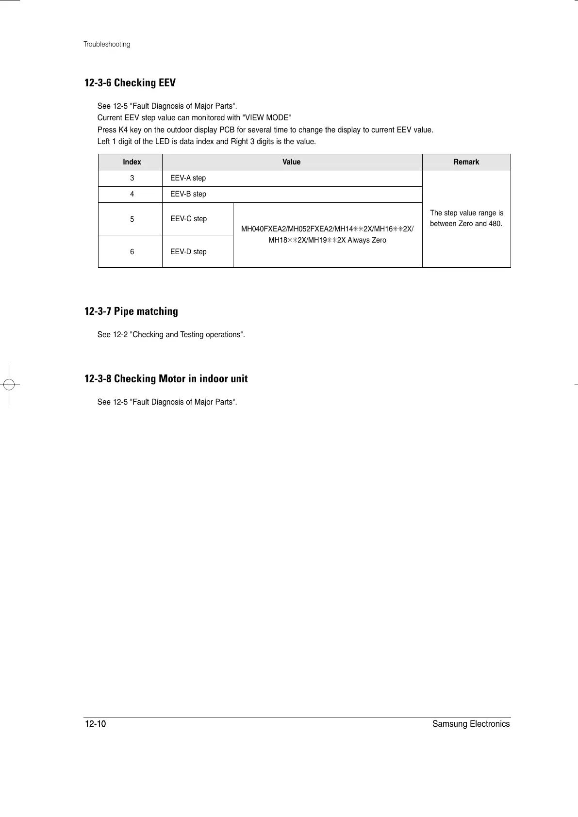 Samsung MH068FXEA4 - Checking EEV; Pipe matching; Checking Motor in indoor unit