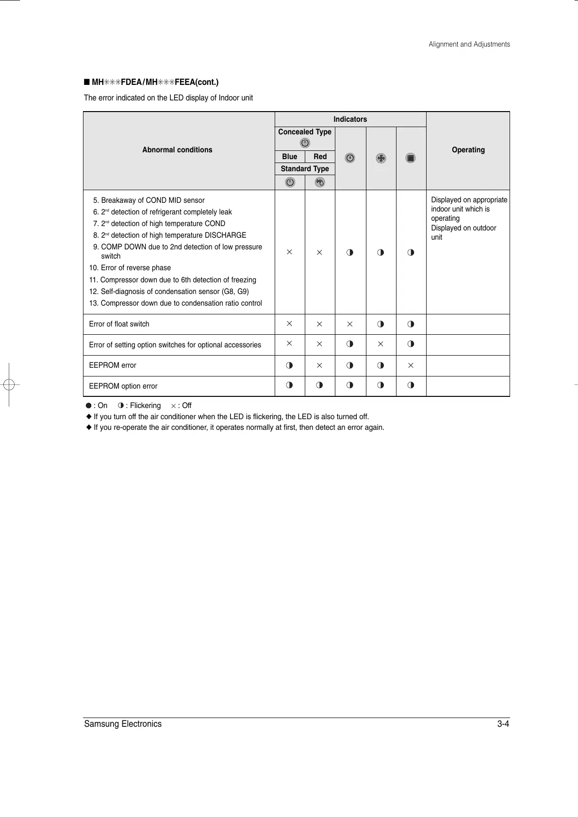 ◆ If you turn off the air conditioner when the LED is flickering, the LED is also turned off.