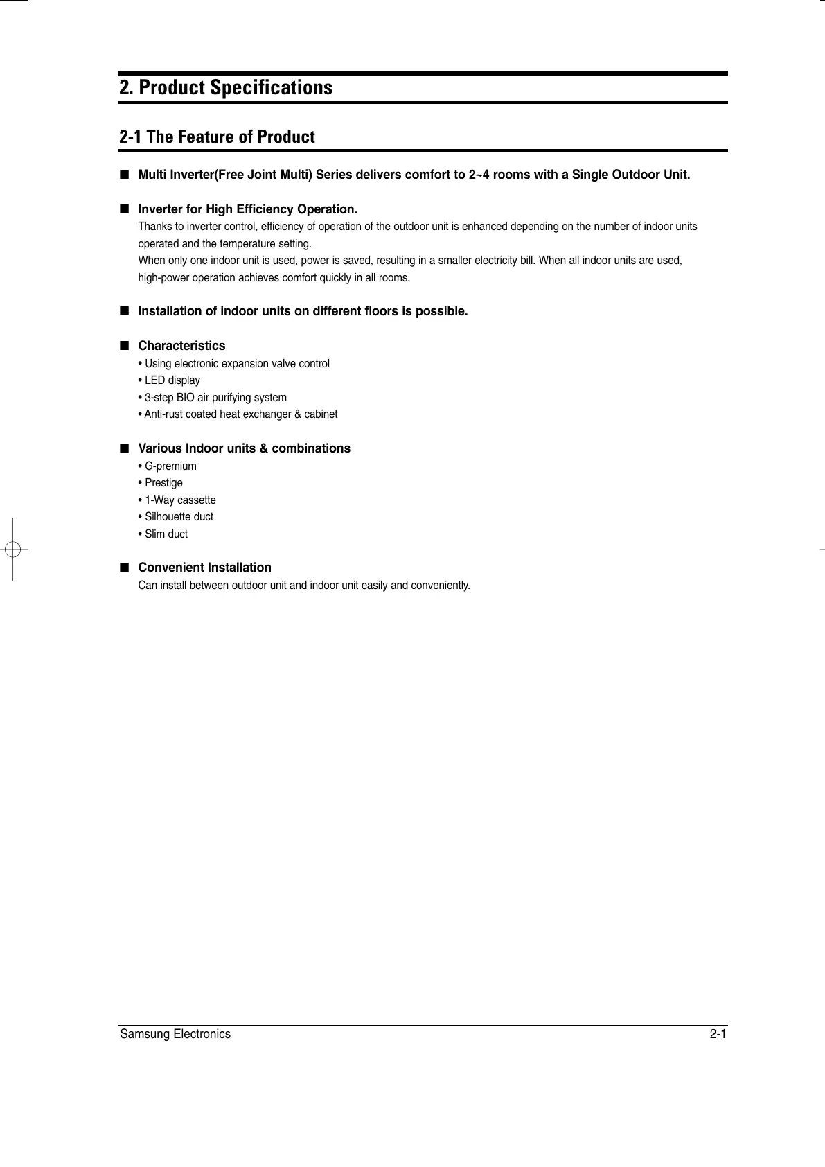 ■ Multi Inverter(Free Joint Multi) Series delivers comfort to 2~4 rooms with a Single Outdoor Unit.