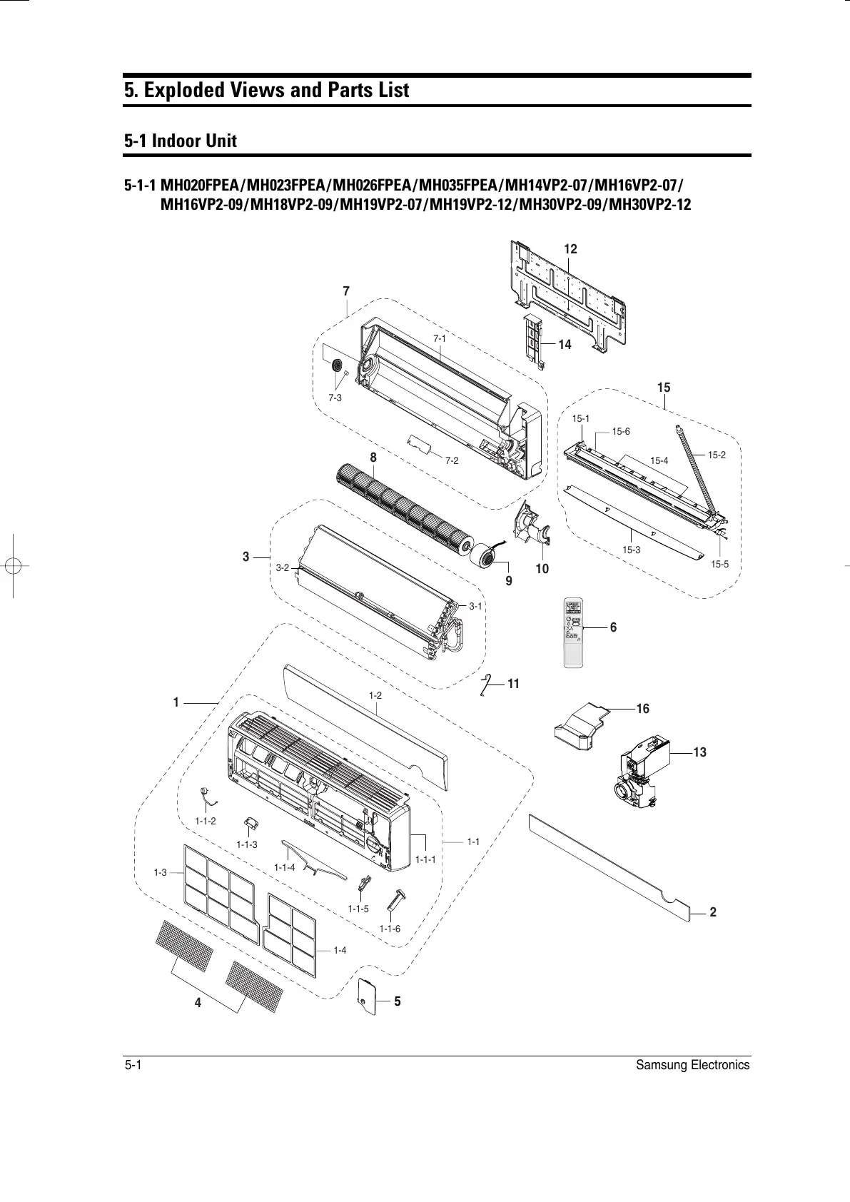 Samsung MH068FXEA4 - Exploded Views and Parts List; Indoor Unit Exploded View - MH020 FPEA;MH023 FPEA;...;MH30 VP2-12