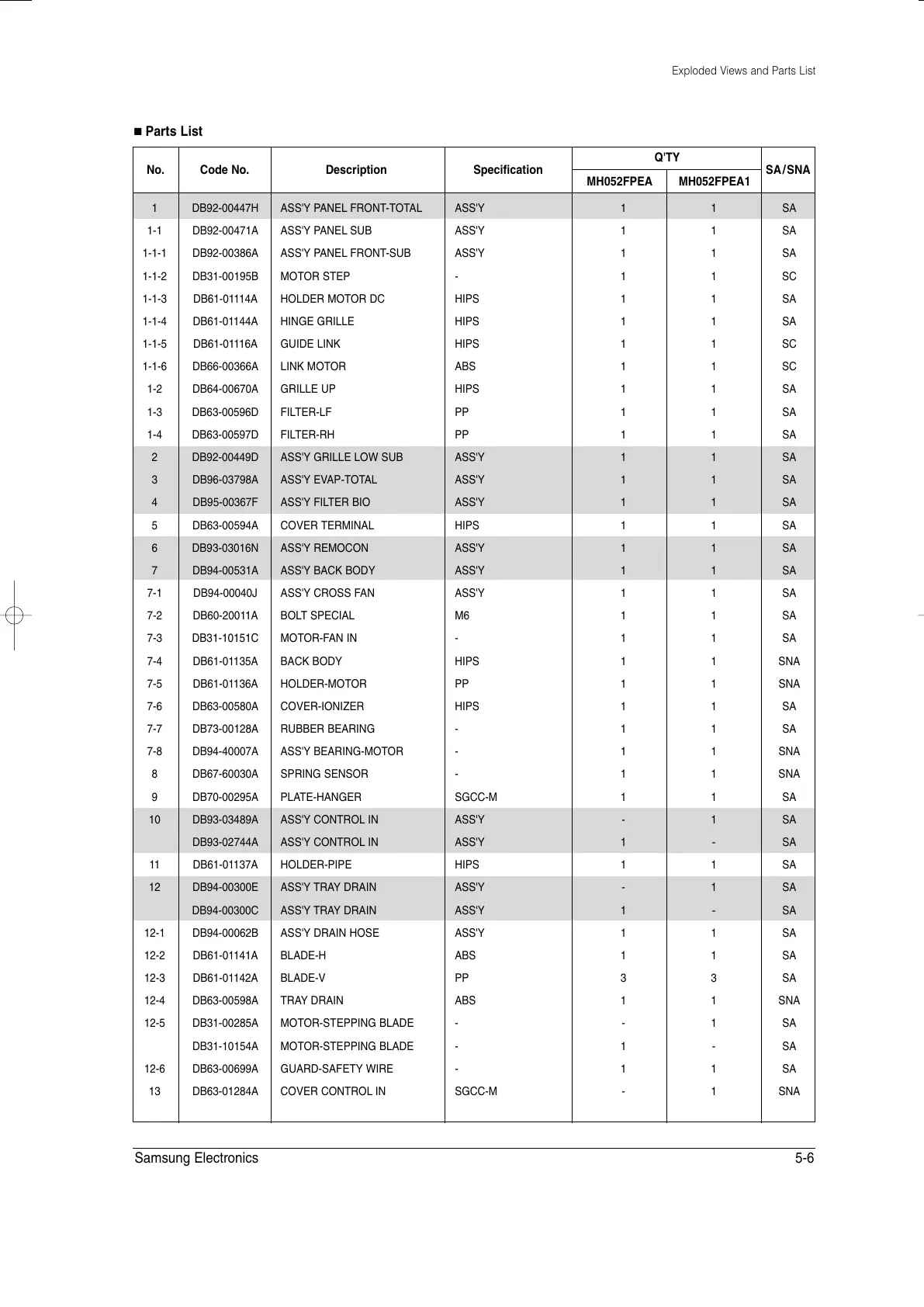 6 DB93-03016N ASS'Y REMOCON ASS'Y 1 1 SA
