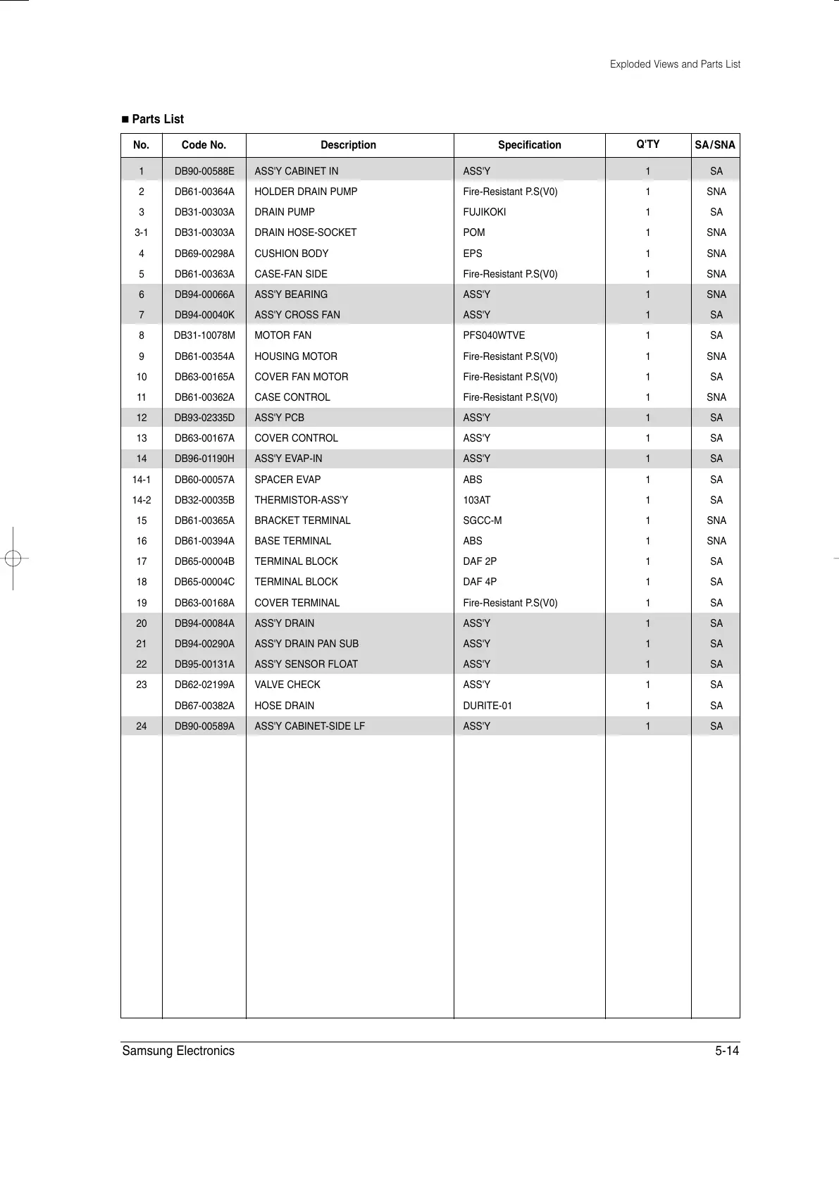 14 DB96-01190H ASS'Y EVAP-IN ASS'Y 1 SA