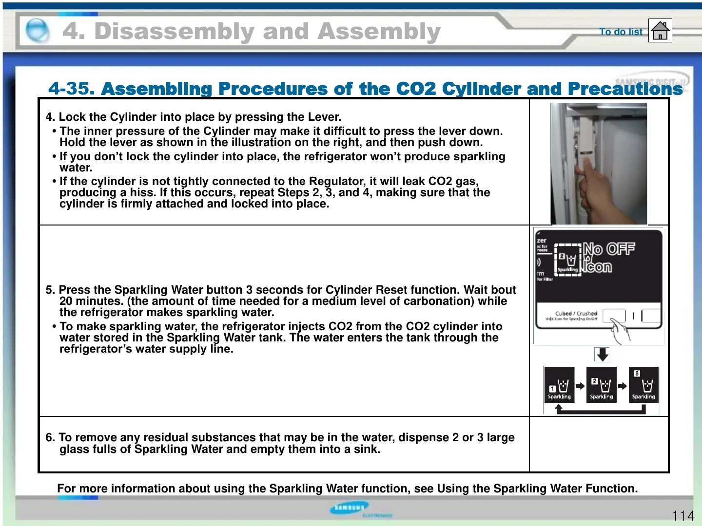 • To make sparkling water, the refrigerator injects CO2 from the CO2 cylinder into