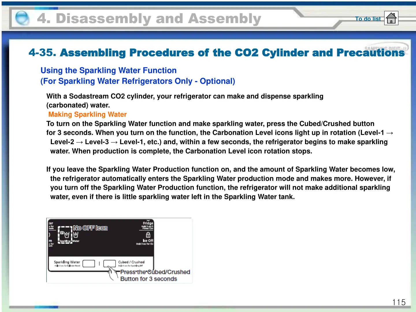 you turn off the Sparkling Water Production function, the refrigerator will not make additional sparkling