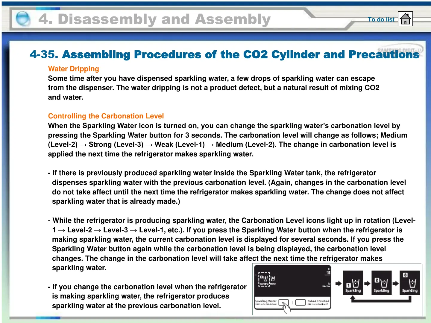 - While the refrigerator is producing sparkling water, the Carbonation Level icons light up in rotation (Level-