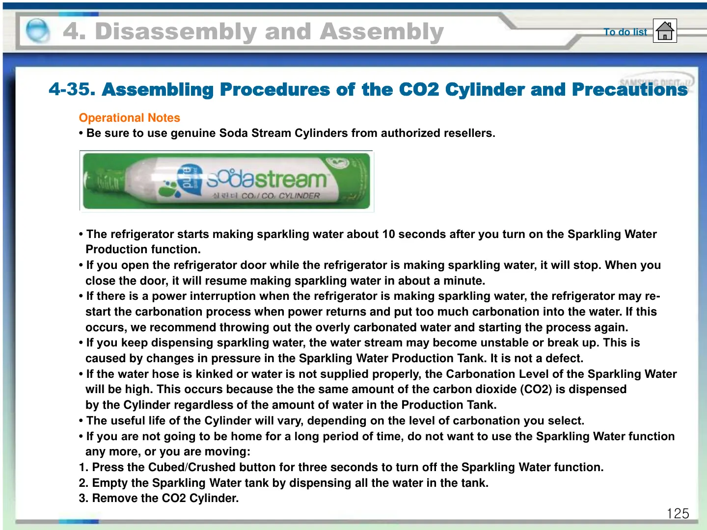 • If there is a power interruption when the refrigerator is making sparkling water, the refrigerator may re-