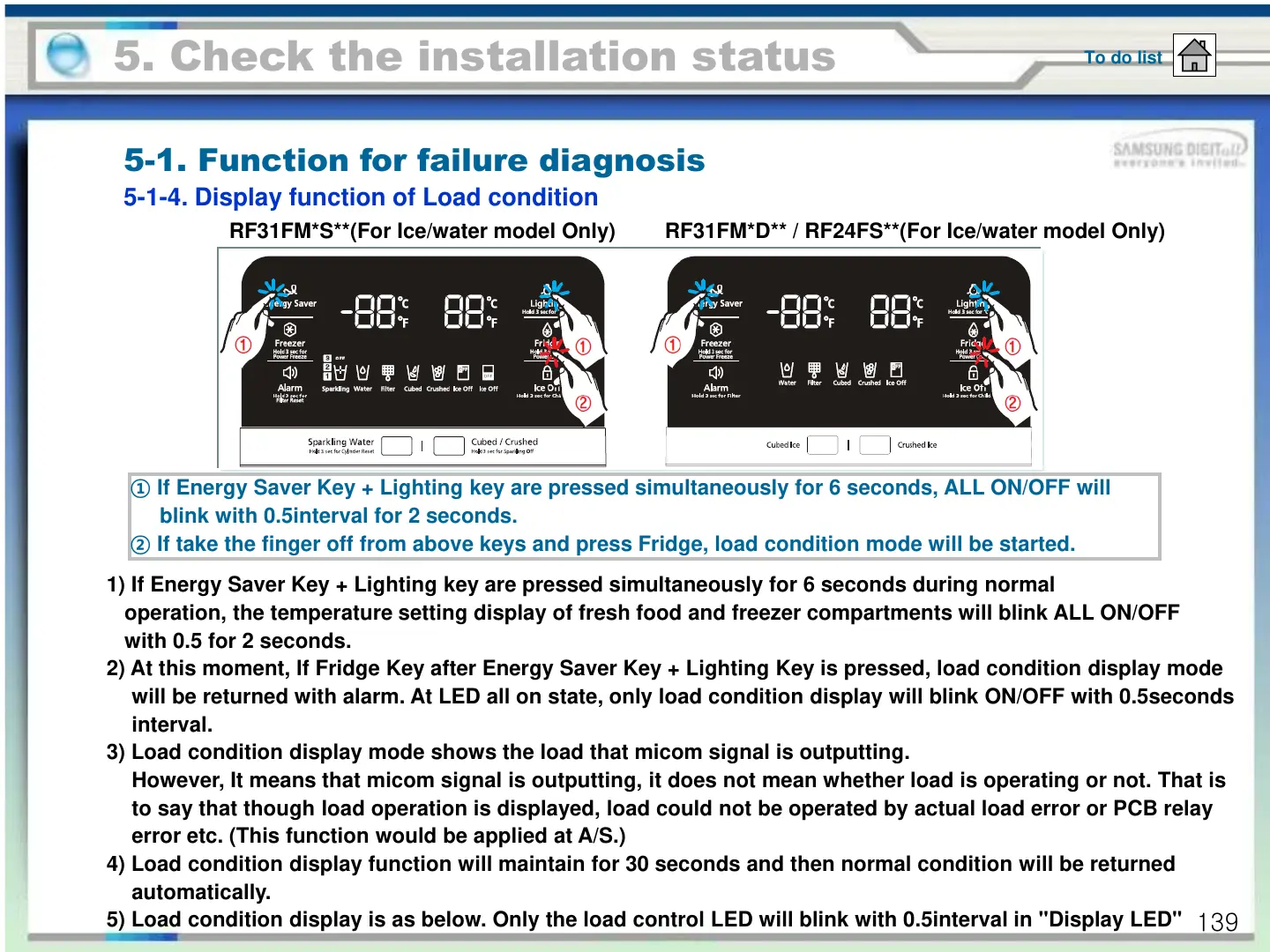 2) At this moment, If Fridge Key after Energy Saver Key + Lighting Key is pressed, load condition display mode