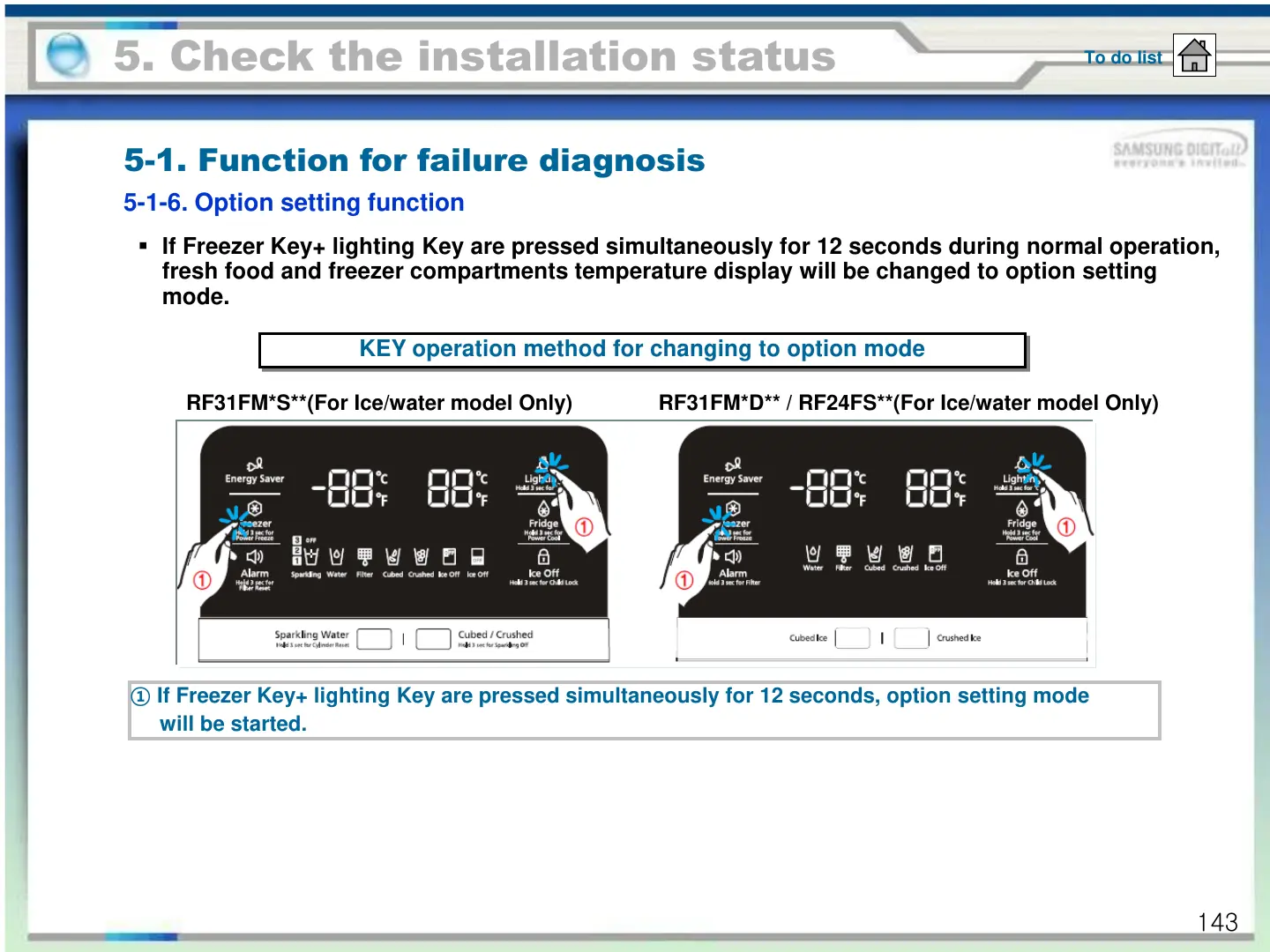 ① If Freezer Key+ lighting Key are pressed simultaneously for 12 seconds, option setting mode