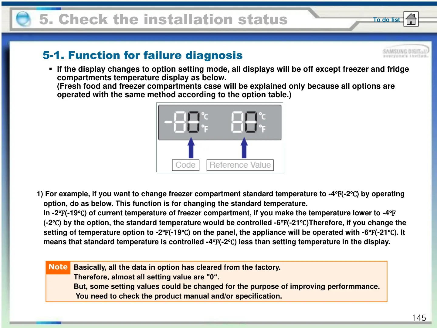 1) For example, if you want to change freezer compartment standard temperature to -4
