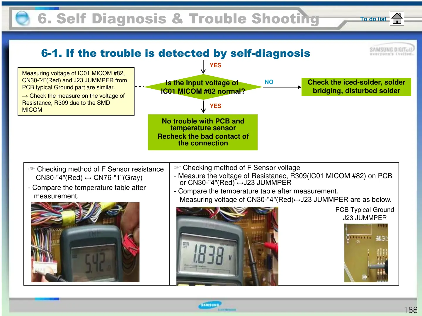 - Measure the voltage of Resistanec, R309(IC01 MICOM #82) on PCB