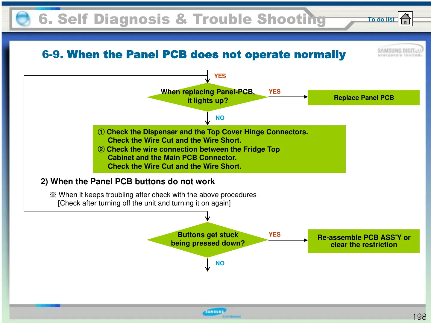 2) When the Panel PCB buttons do not work