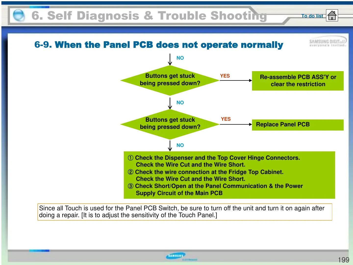 Since all Touch is used for the Panel PCB Switch, be sure to turn off the unit and turn it on again after