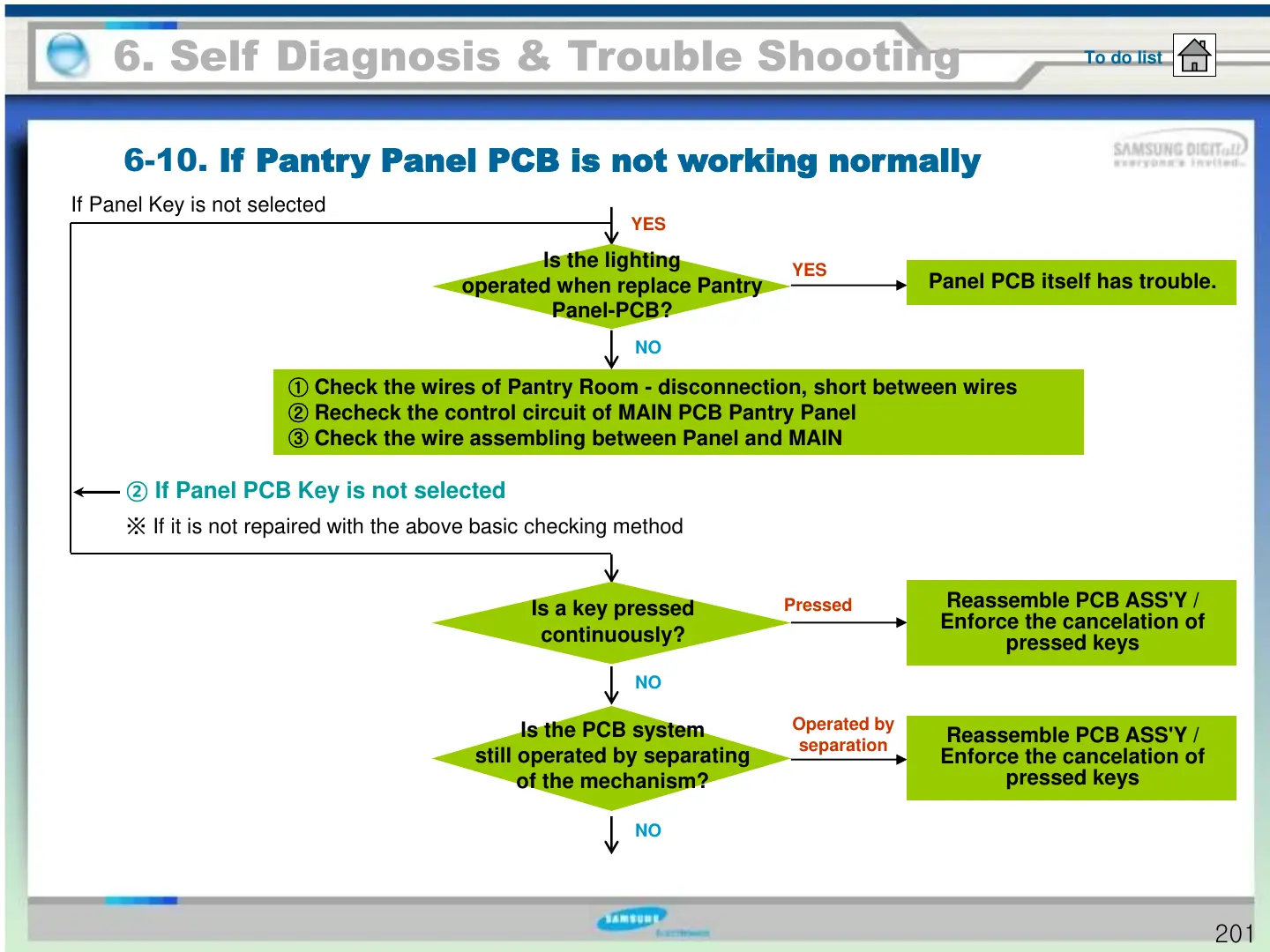 ② Recheck the control circuit of MAIN PCB Pantry Panel