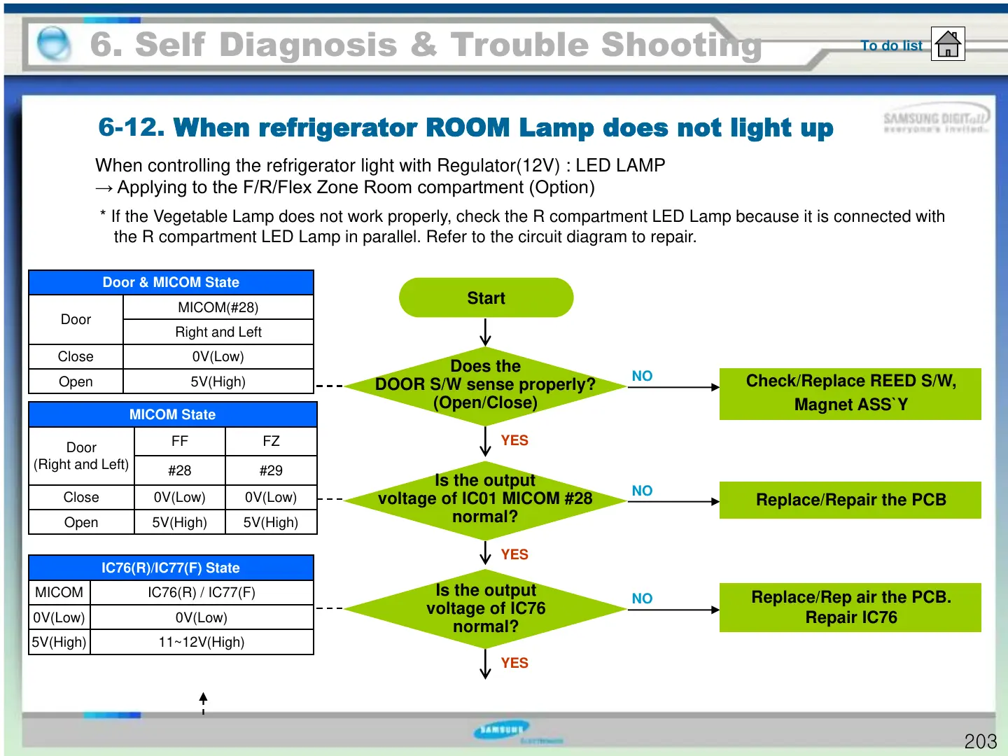 6-12. When refrigerator ROOM Lamp does not light up