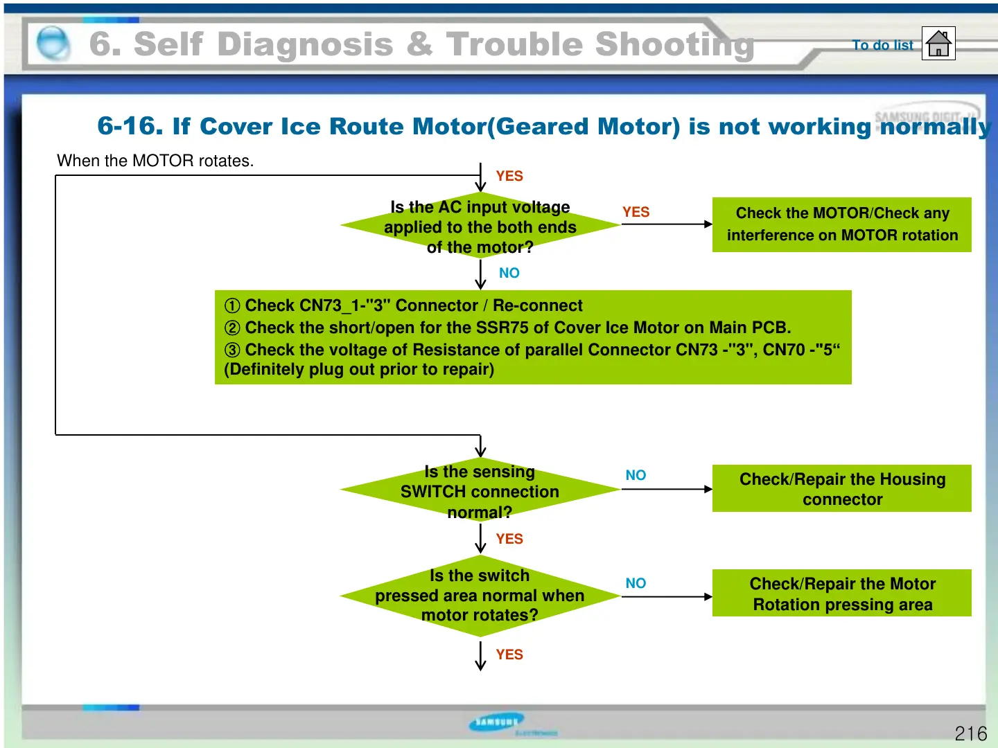6-16. If Cover Ice Route Motor(Geared Motor) is not working normally