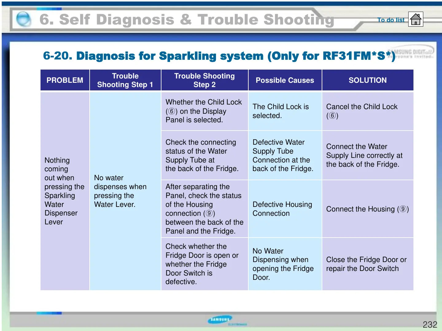 6-20. Diagnosis for Sparkling system (Only for RF31FM*S*)
