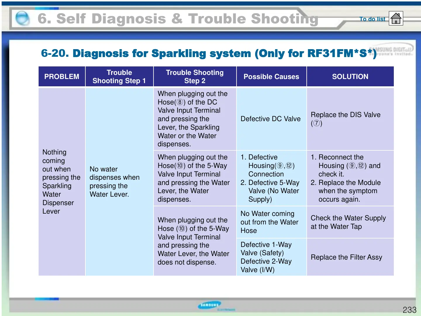 6-20. Diagnosis for Sparkling system (Only for RF31FM*S*)