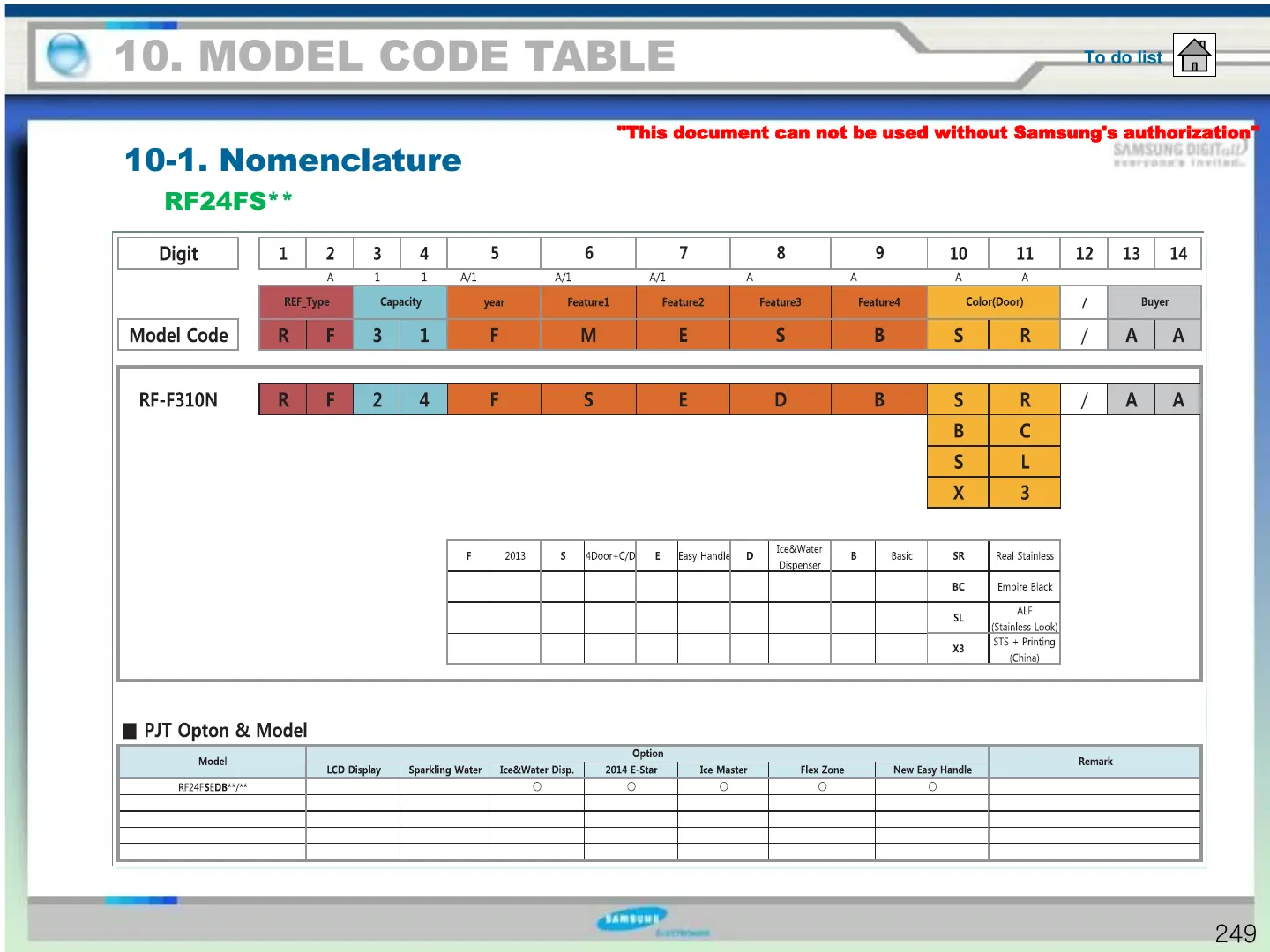 10. MODEL CODE TABLE