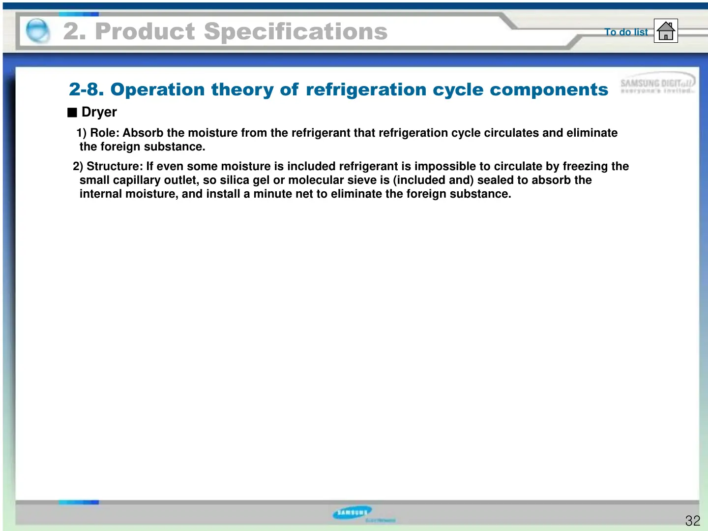 1) Role: Absorb the moisture from the refrigerant that refrigeration cycle circulates and eliminate