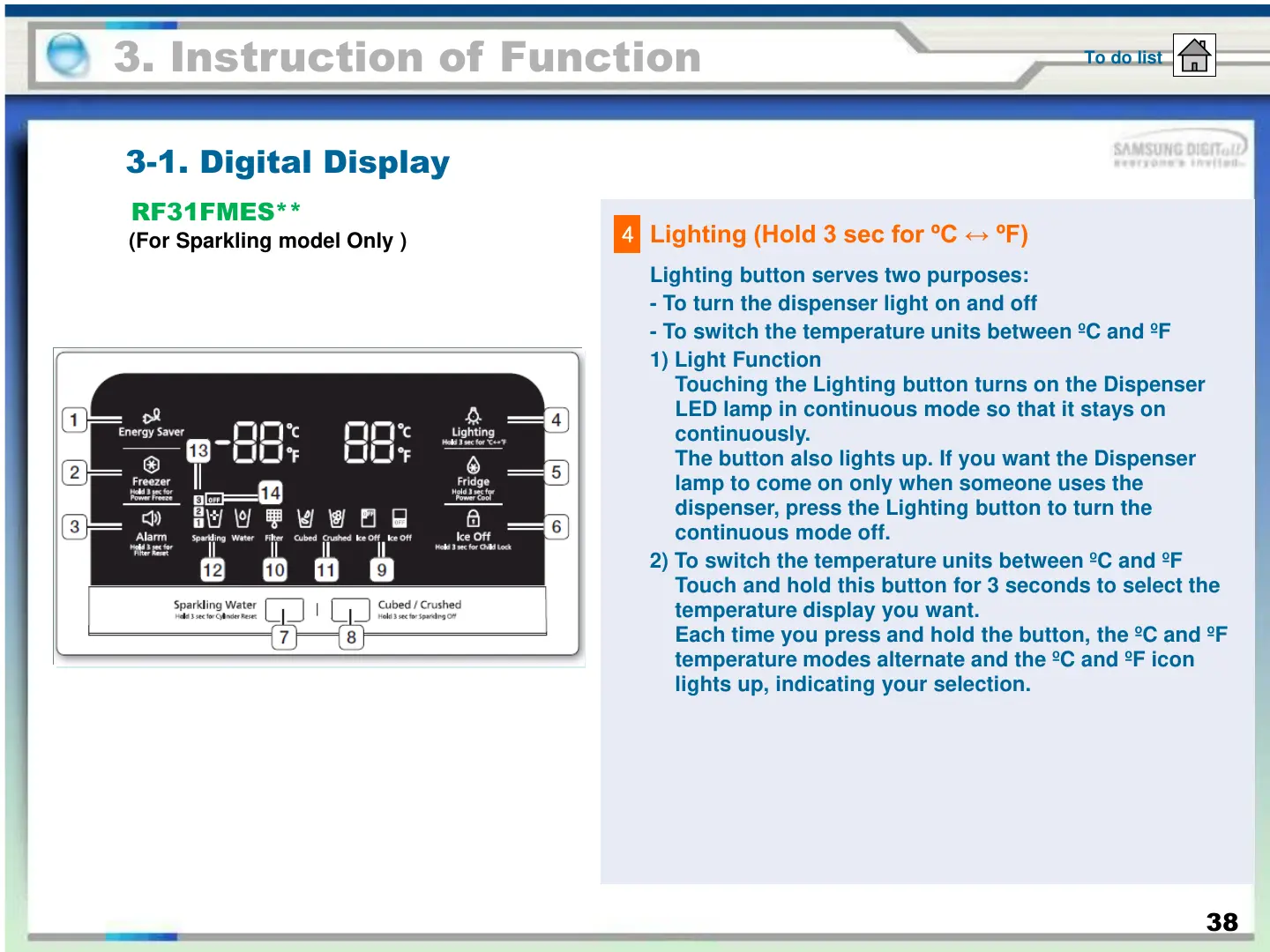 Lighting (Hold 3 sec for ºC ↔ ºF)