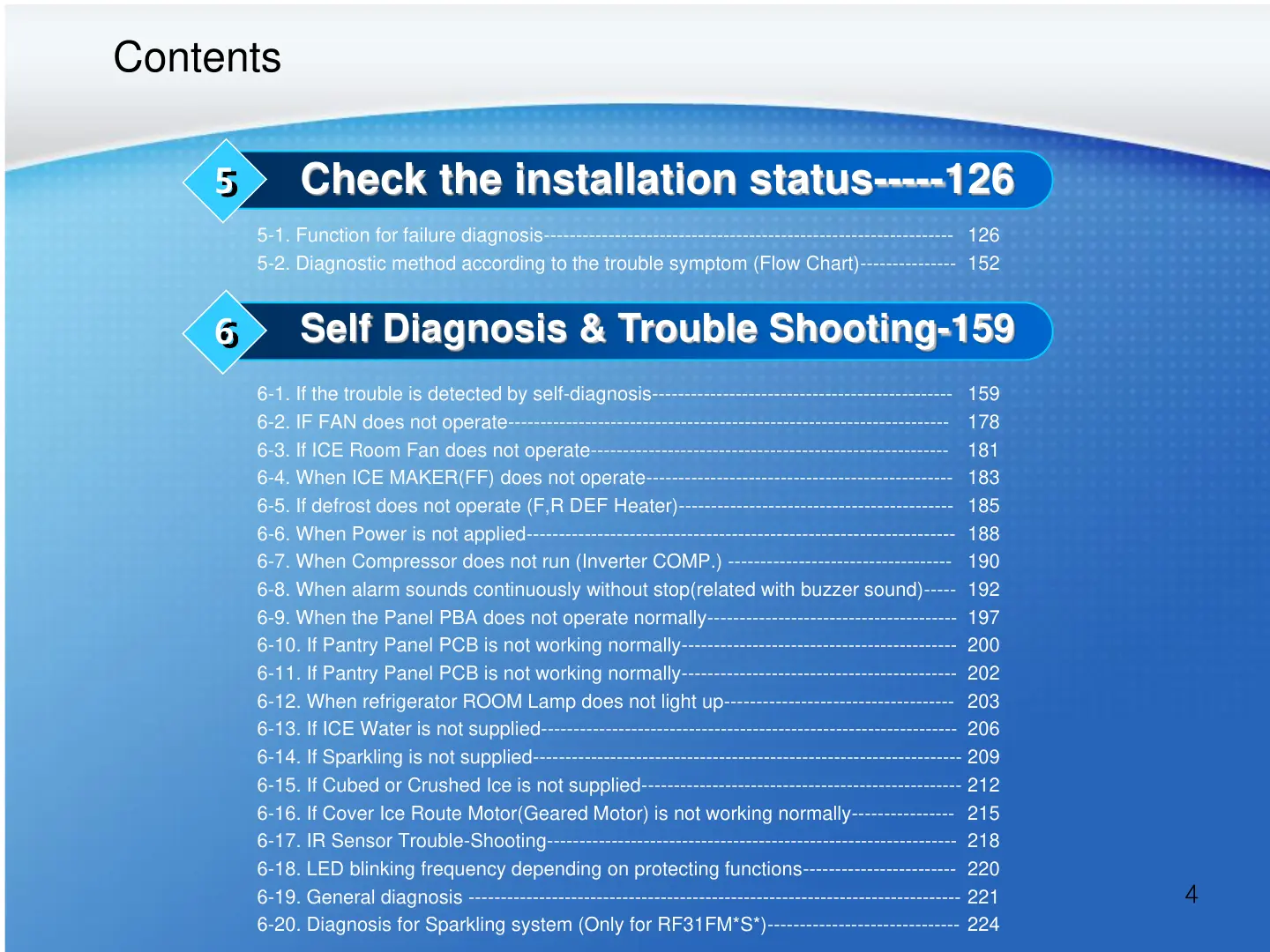 6-20. Diagnosis for Sparkling system (Only for RF31FM*S*)------------------------------ 224