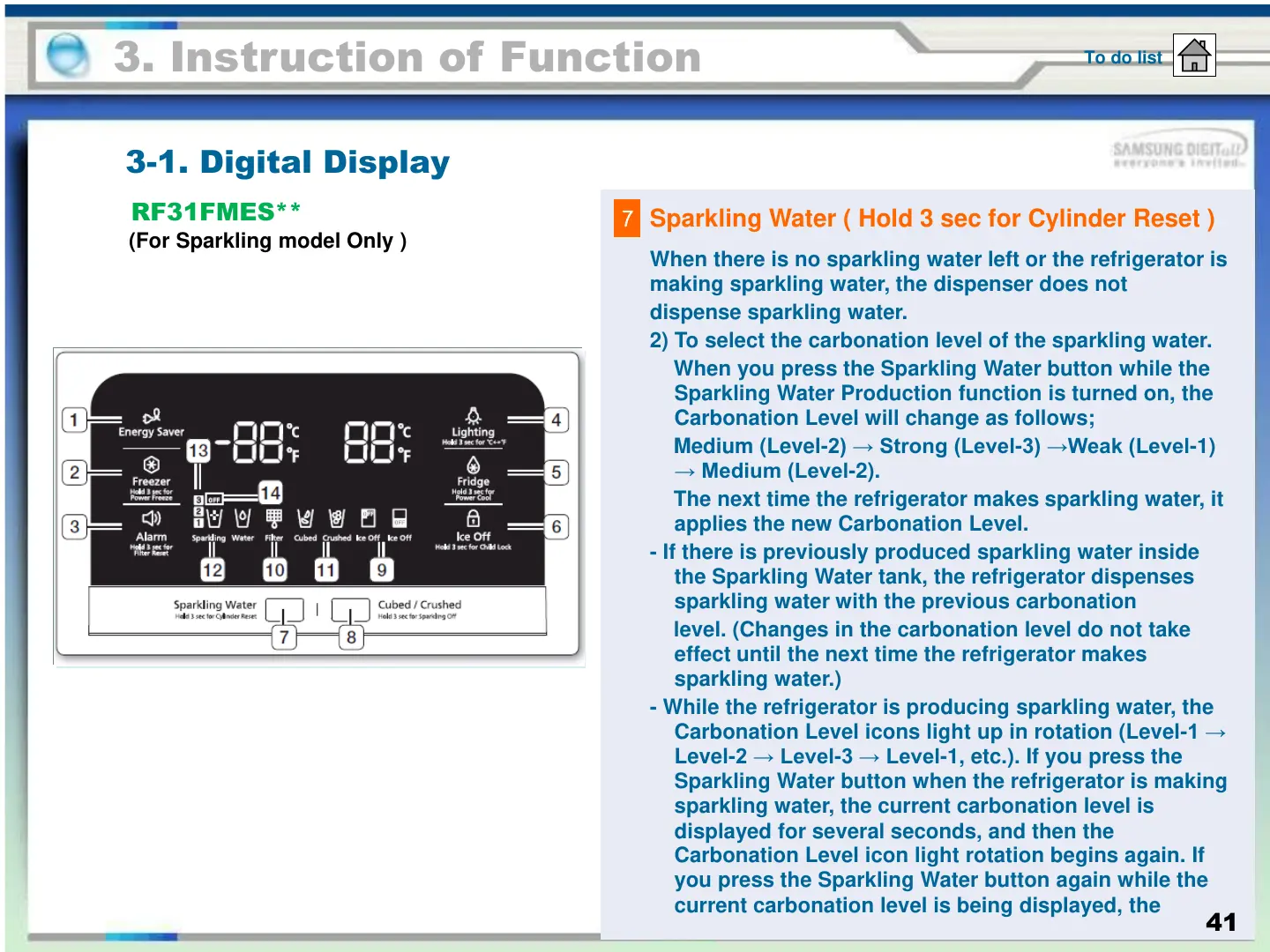 Sparkling Water ( Hold 3 sec for Cylinder Reset )