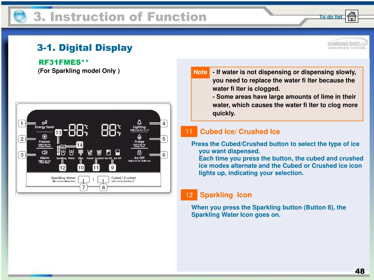 When you press the Sparkling button (Button 8), the