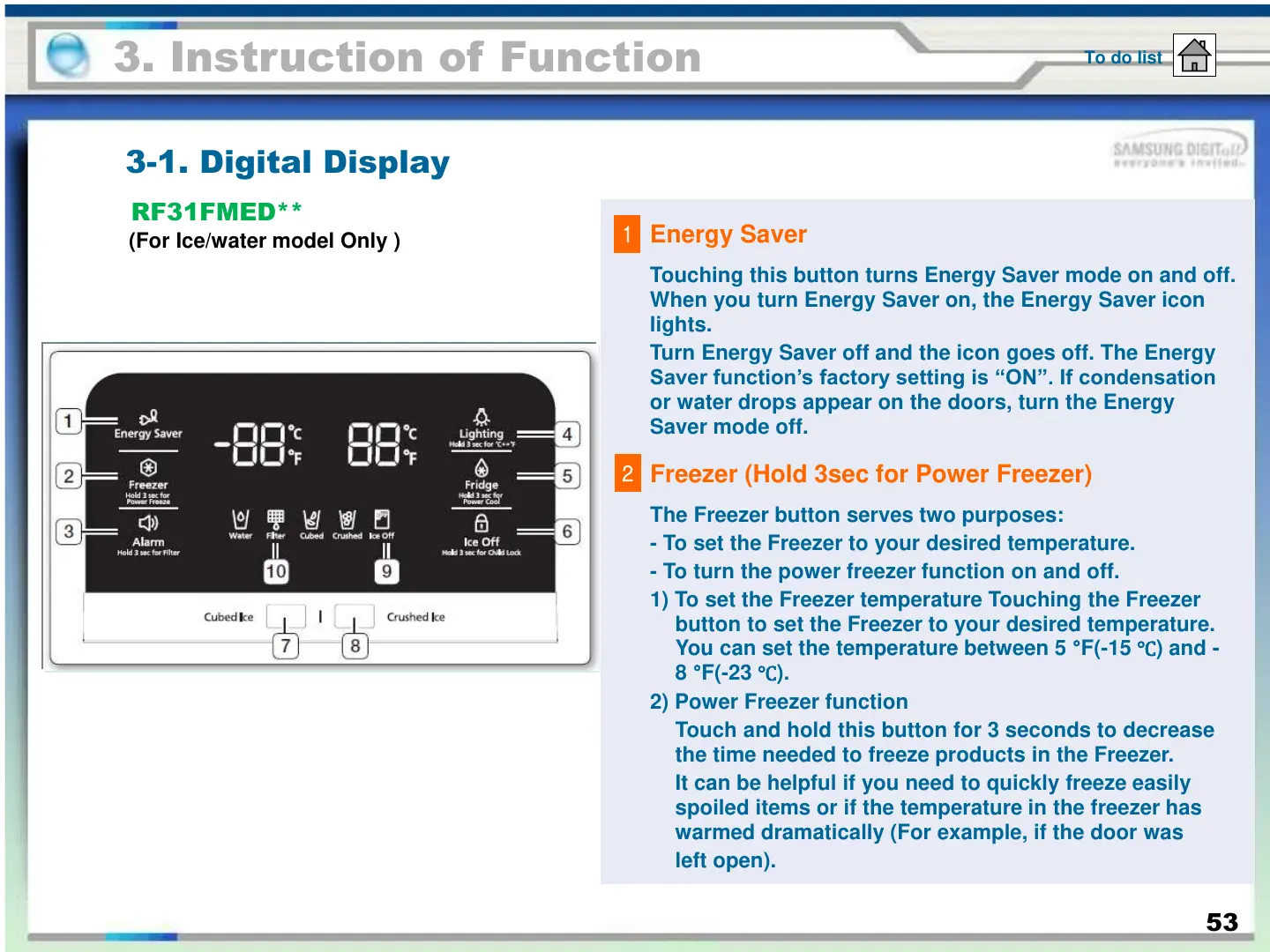 - To set the Freezer to your desired temperature.