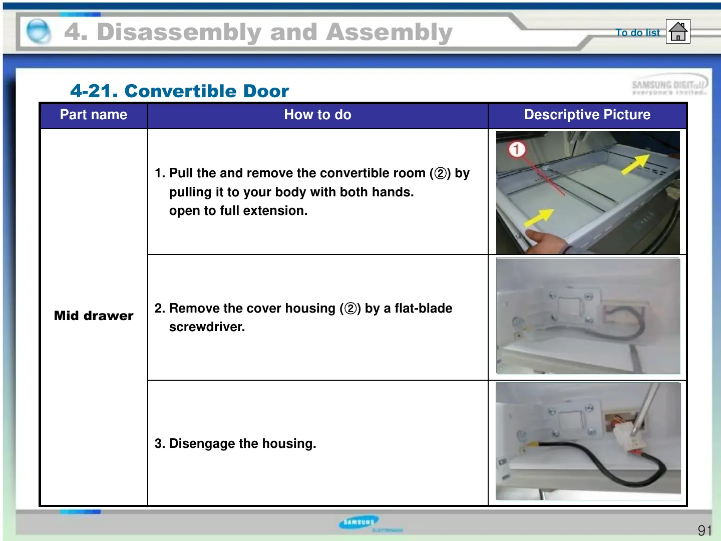 1. Pull the and remove the convertible room (②) by