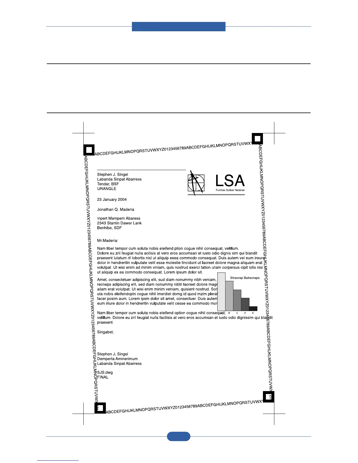 below (5%). The A4 ISO 19752 standard pattern samples are reproduced reduced to 70% of the actual A4