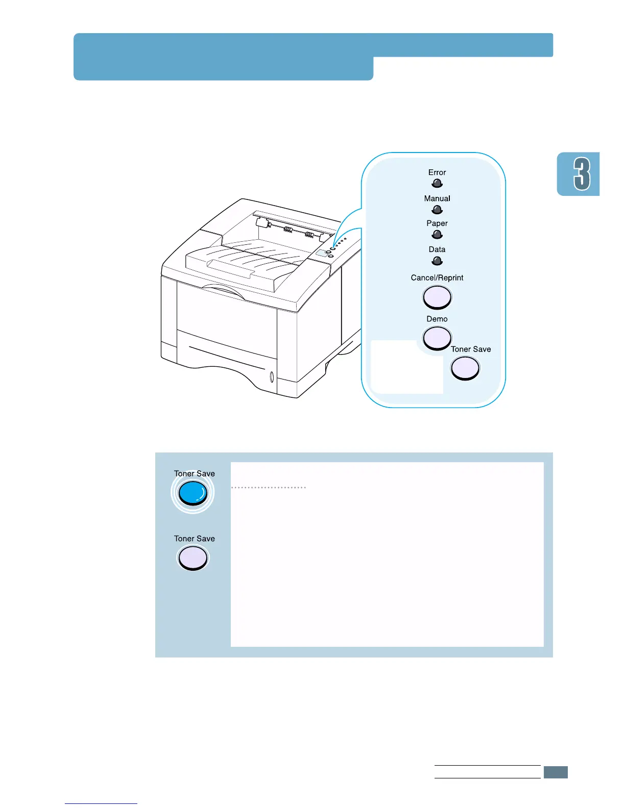 The printer has three buttons: Cancel/Reprint, Demo and Toner Save.