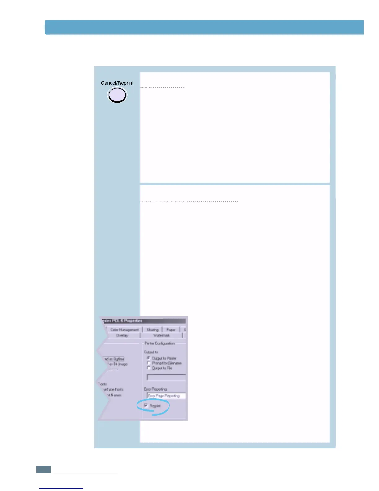 the printer’s properties, the Cancel/Reprint button on the