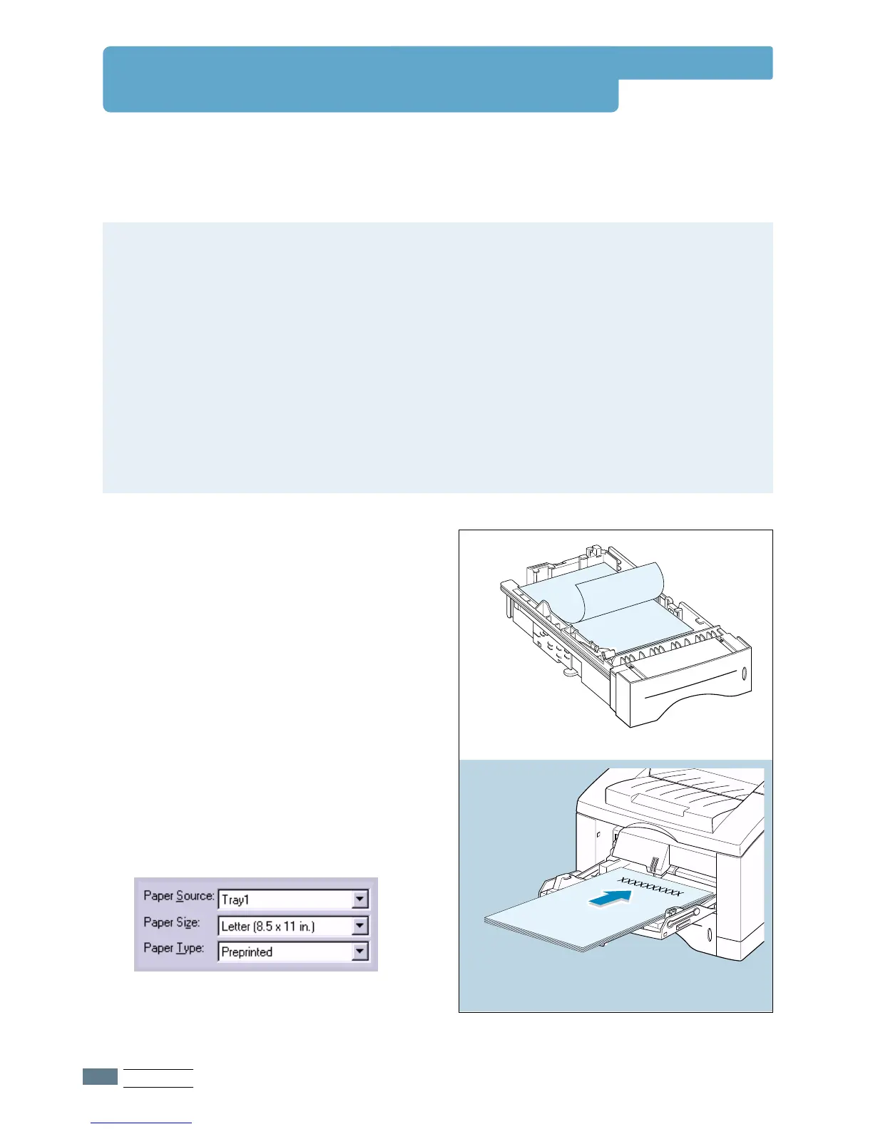 the printer (paper that has a preprinted logo at the top of the page, for exsample).