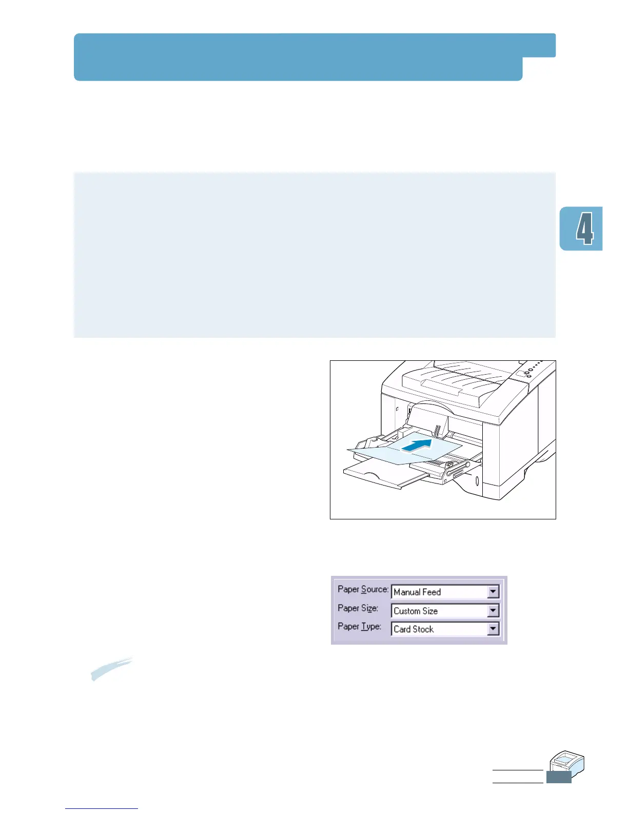 Postcards, 3.5 by 5.83 in.(index) cards and other custom-sized media can be printed with the