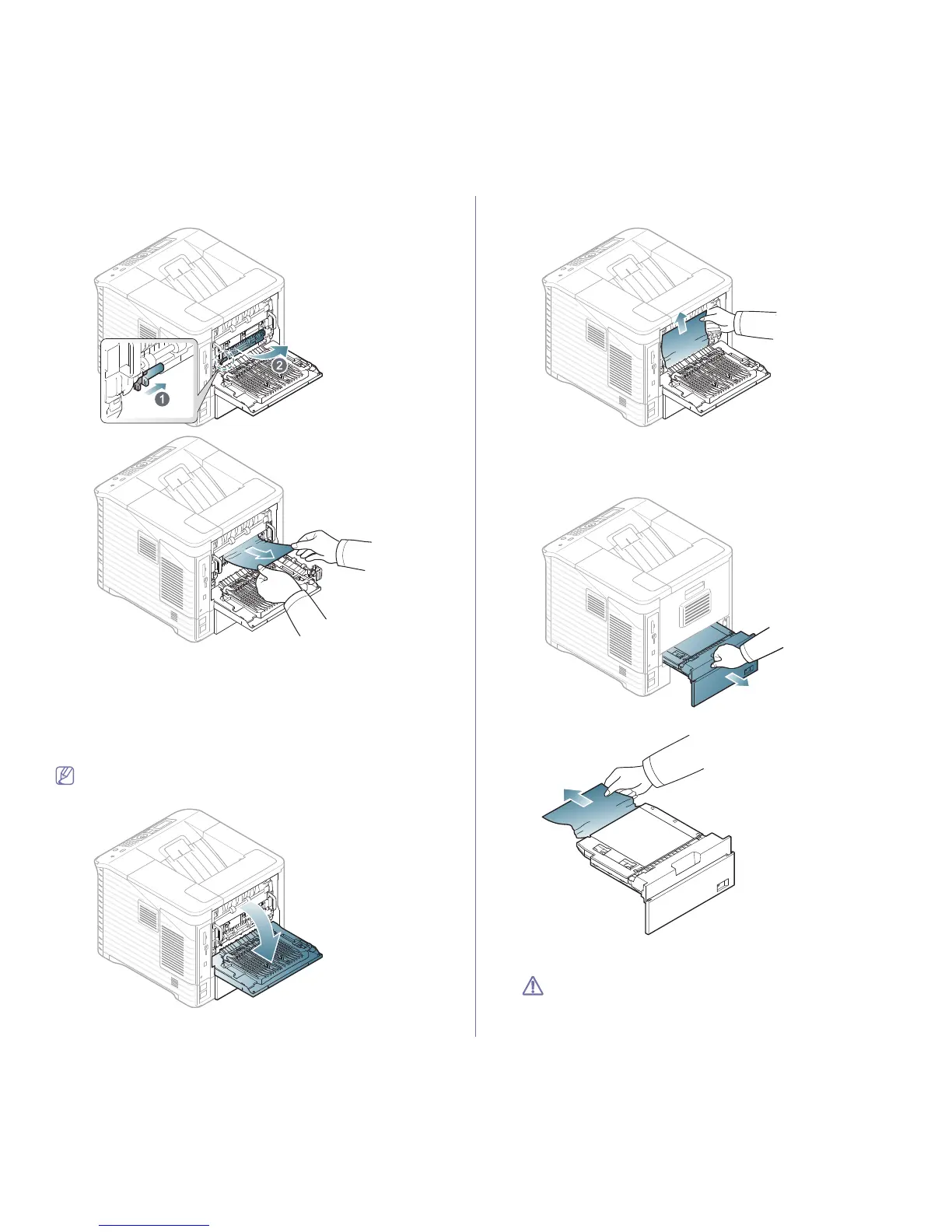 4. By opening the fuser lever, loosen the jammed paper. Then gently pull