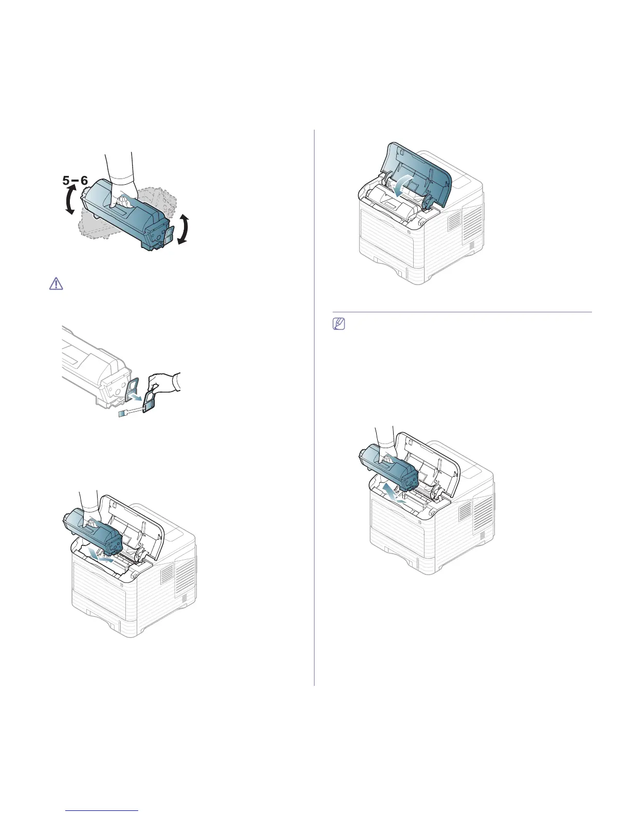 5. Hold the toner cartridge by the handle and slowly insert the cartridge into