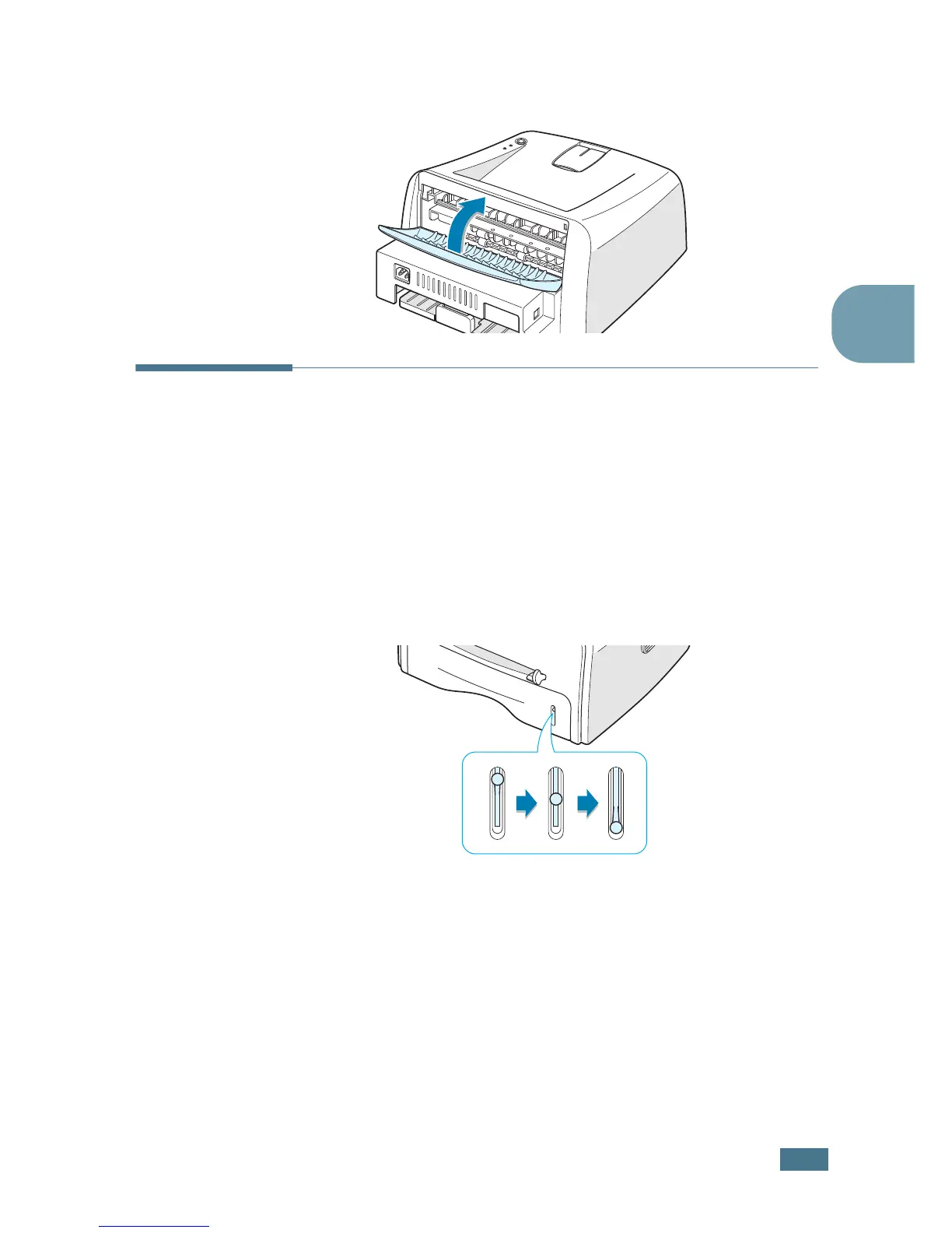 The paper level bar on the front of the paper tray shows the